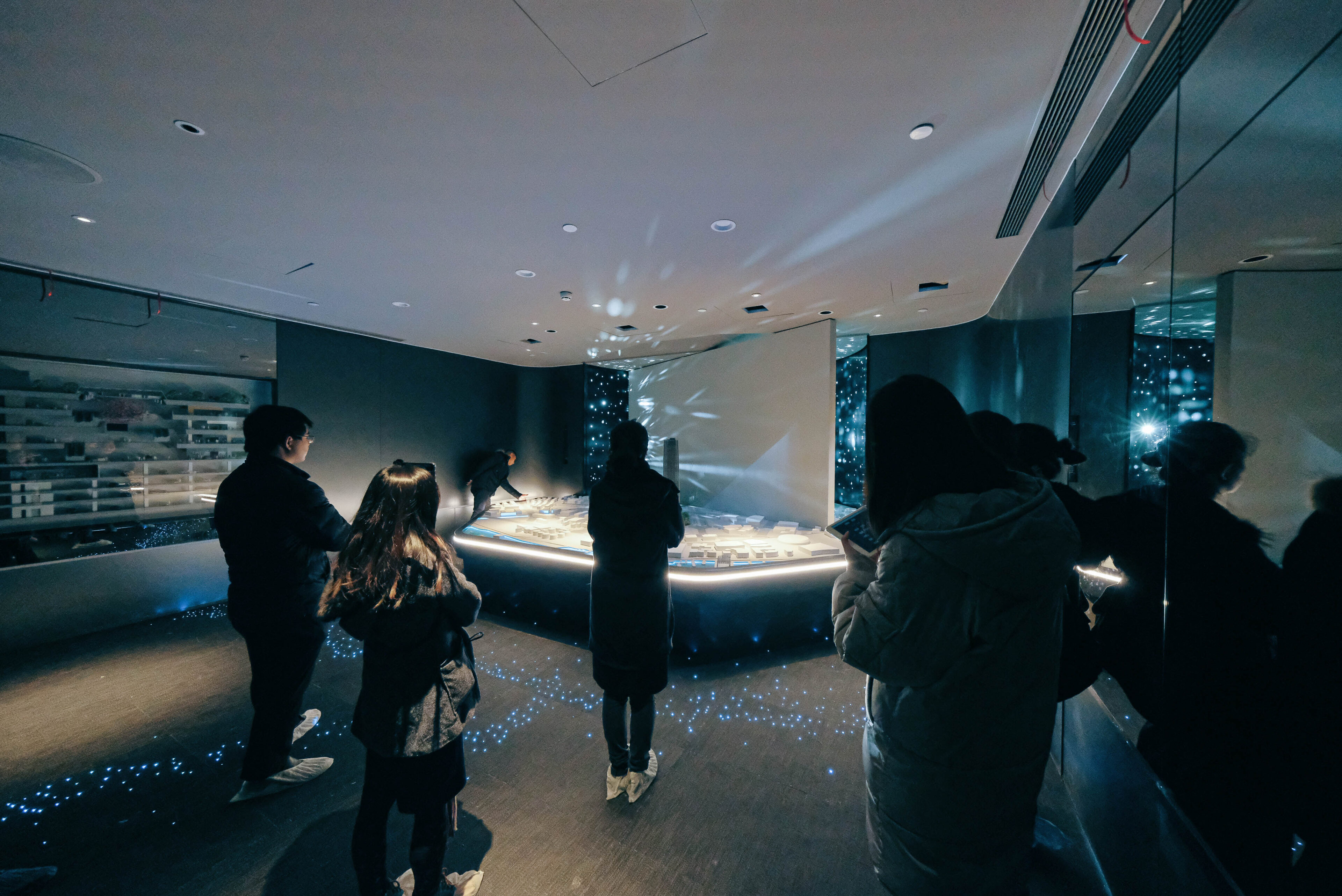 At the time when HendersonLand China launched the Lumina Guangzhou Sales Office, they also debuted a showroom for Lumina Shanghai and engaged yucolab as the designer for the interior and multimedia experience, too. Themed with a panoramic, galactic ambience, the beam of starlights lead the visitor to the main chamber of the showroom and dive into the brand story of Lumina Shanghai. This total-experience space is also housed with a self-controlled, rotary architectural model behind the main LED screen. The introductory video shown, together with the add-on projection mapping indications, helps elaborate the edge of the project in a seamless approach.